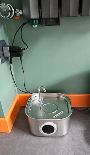 Yes, the stainless steel material is easy to clean, ensuring a fresh water supply for your pet without hassle.